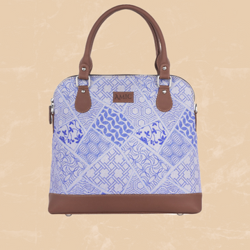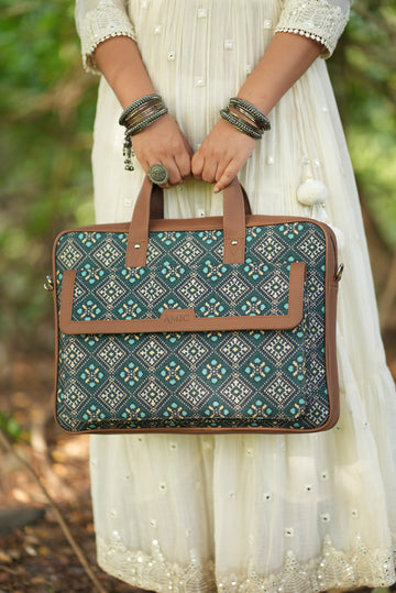 Redefine your workday essentials with the Blue Floral Pattern Vegan Leather Office Bag for Women...