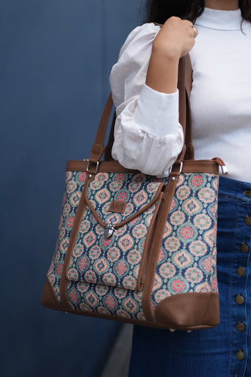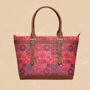 Tote Mughal Art Printed Handmade Vegan Leather Women's Office Bag