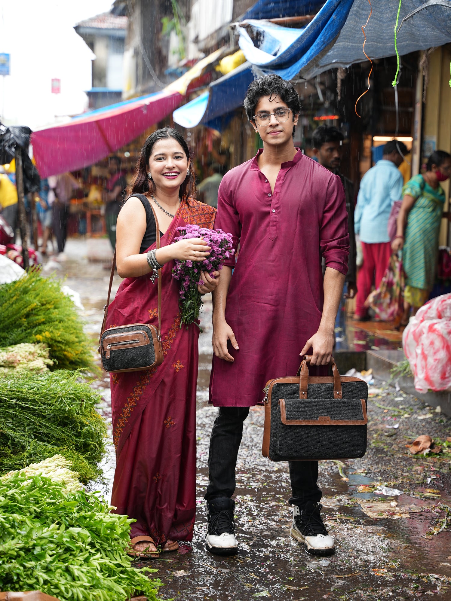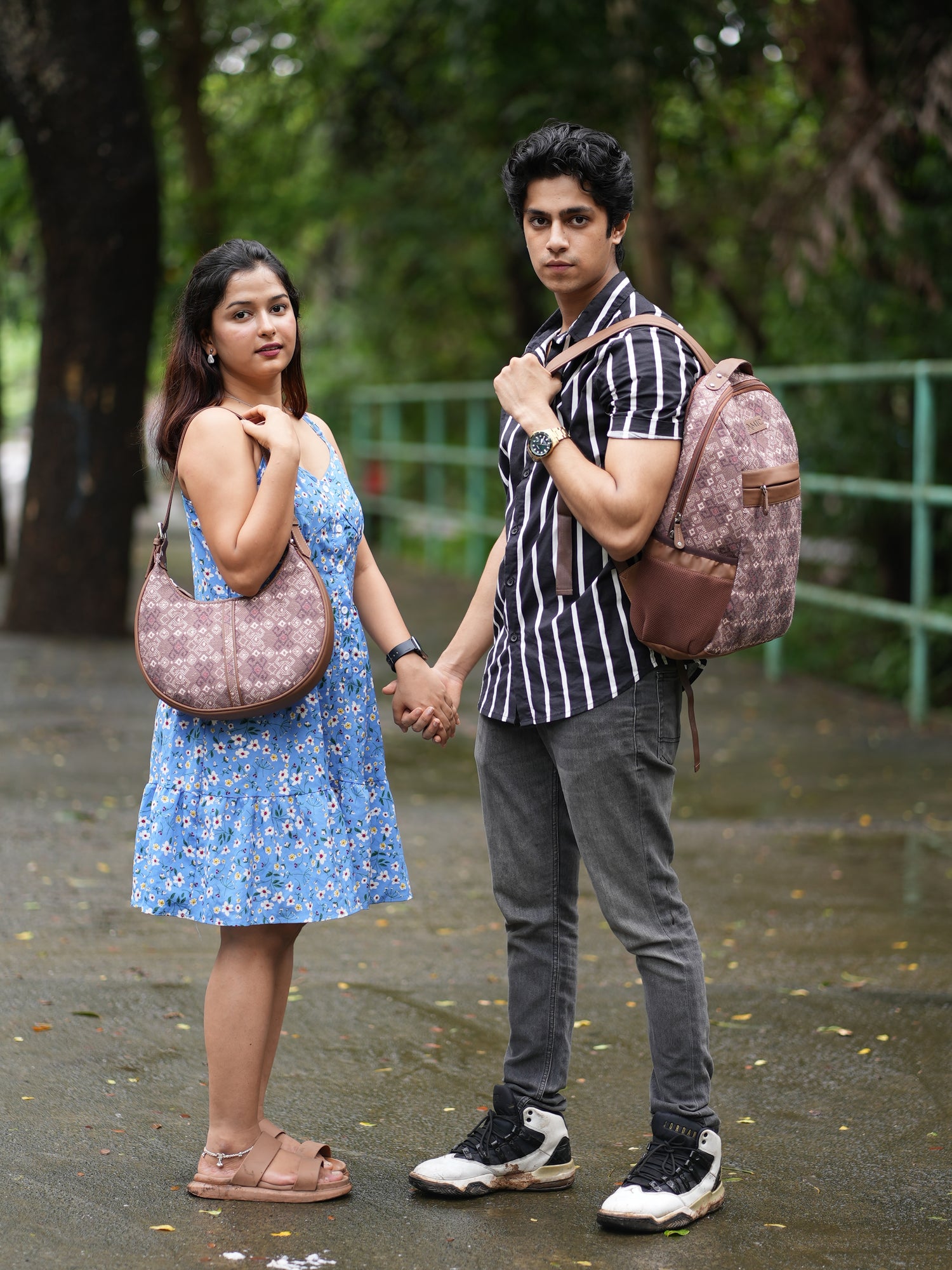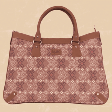 Redefine elegance with the Brown Ikat Vegan Leather Tote Bag for Women by Amic Bags....
