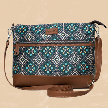 Upgrade your everyday accessory game with the Amic Blue Pattern Sling Wallet – Stylish and...